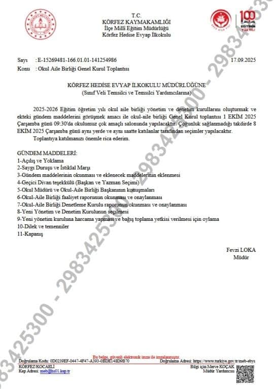 OKUL AİLE BİRLİĞİ GENEL KURUL TOPLANTI DUYURUSU